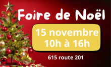 Venez faire vos achats locaux à la foire de Noël qui se tiendra le 15 novembre 2025, de 10h à 16h, au bâtiment patrimonial de Saint-Clet situé au 615 route 201 (ancienne église).