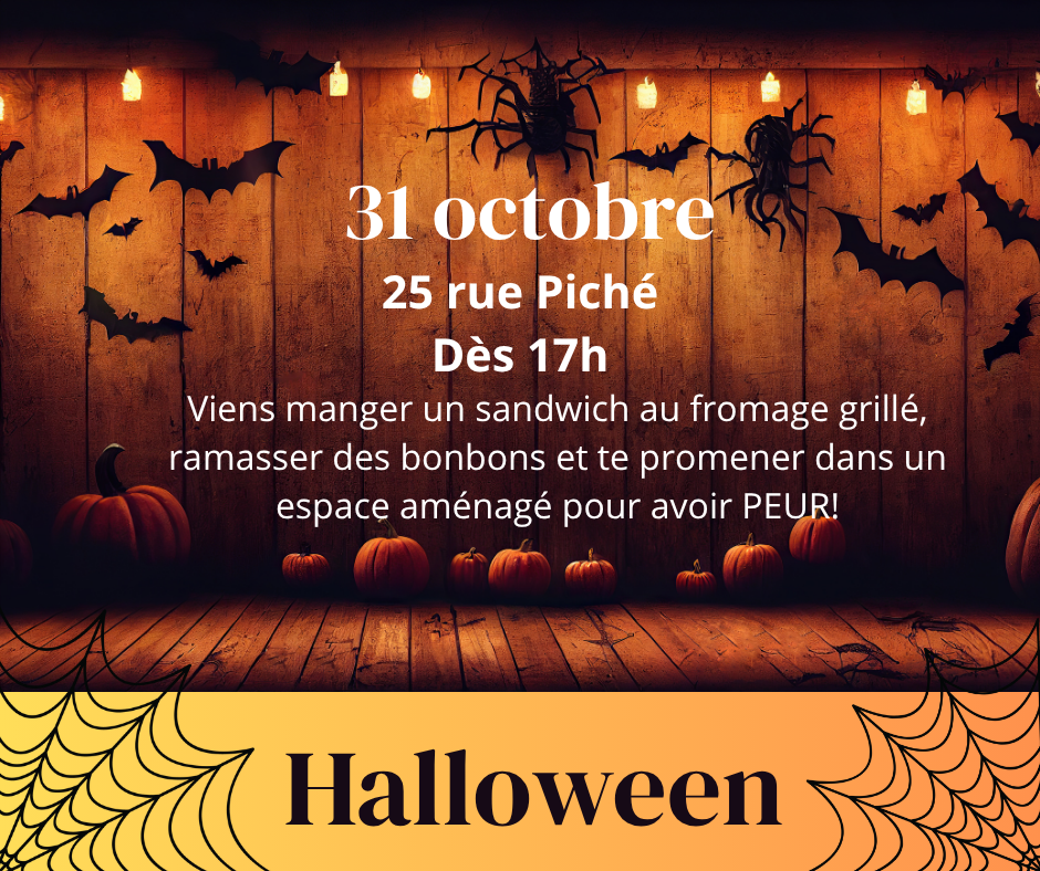 Cette année, le soir du 31 octobre, nous vous accueillerons à un nouvel emplacement pour la distribution des bonbons. En effet, dès 17h, nous vous donnons rendez-vous au parc Apollo, près de la bibliothèque municipale au 25, rue Piché. Comme le veut la tradition, des sandwichs au fromage fondu et des breuvages seront servis.